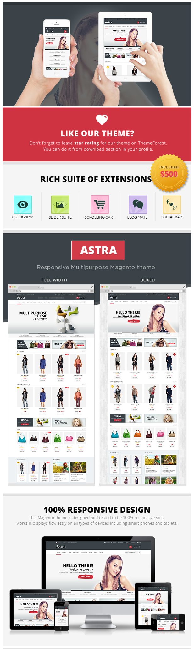 - Template is fully compatible with Magento CE version: 1.8, 1.9