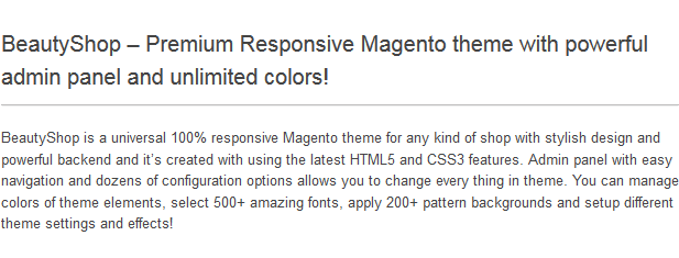 - 2 top menu types with Mega Menu feature (Standart magento menu and Special Beautyshop menu type)