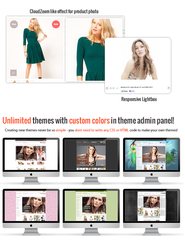 - Unlimited color combination and themes - make your own color themes from admin panel