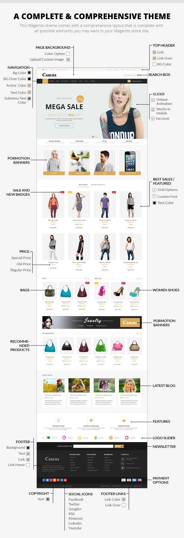 - Easy to customize Magento template.