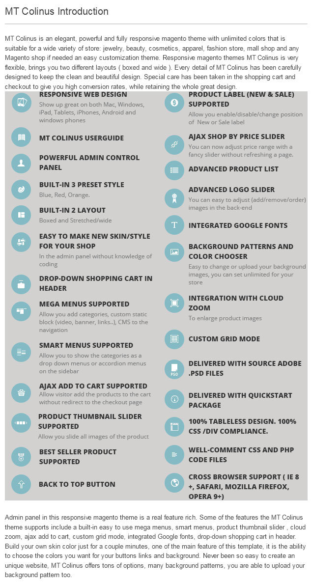 - Easy to make new skin/style for your shop in the admin panel without knowledge of coding