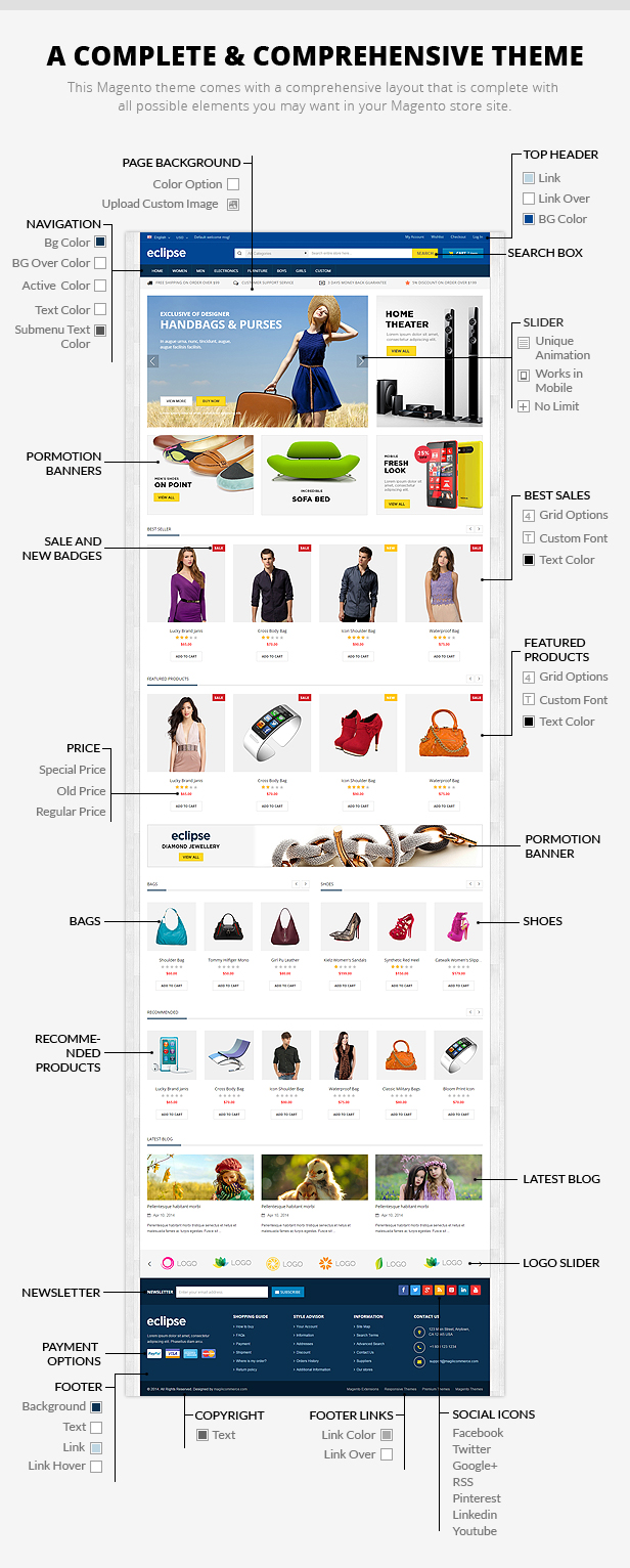- Easy to customize Magento template.