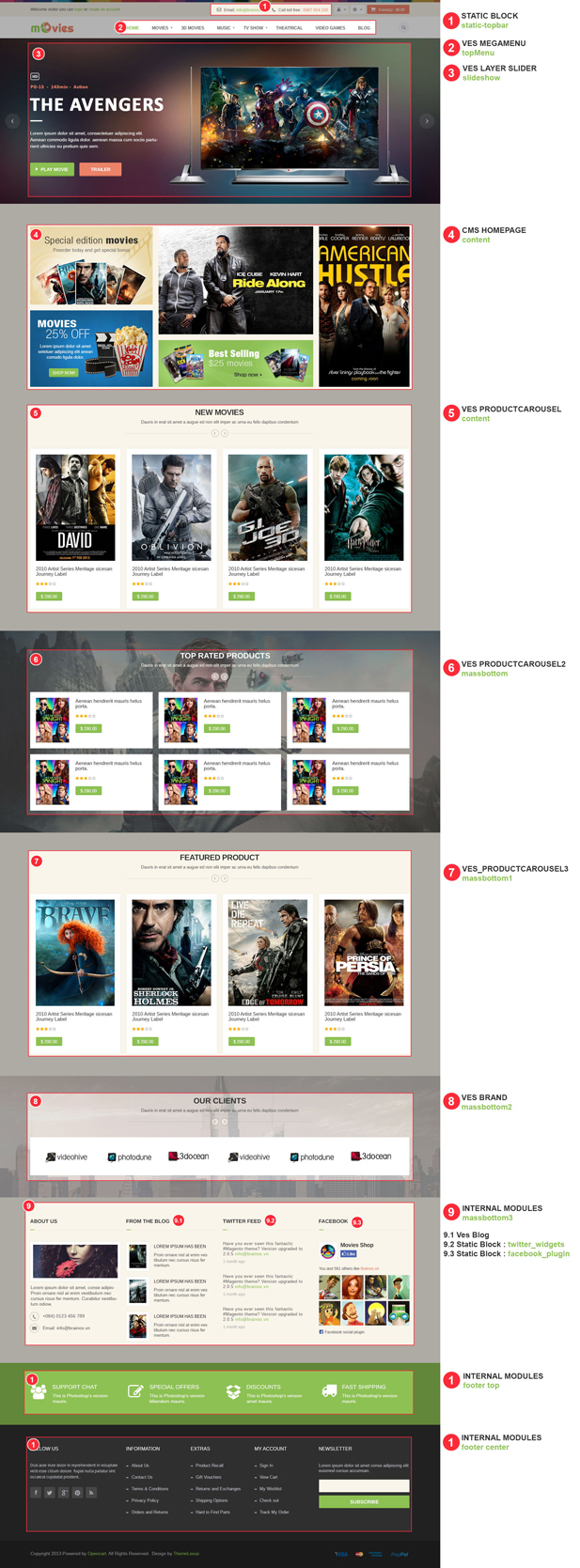 • Easy change color, template width via the Ves Theme Control Panel Module