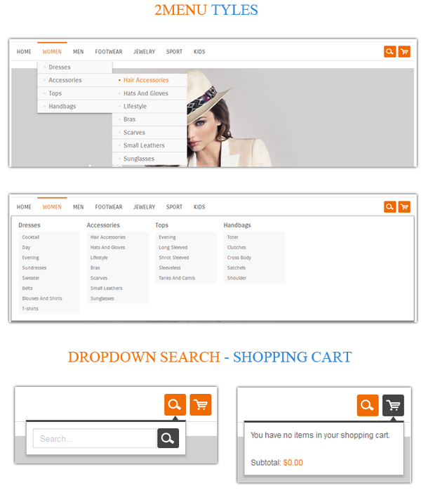 - 2 menu variant: standard menu, Wide menu