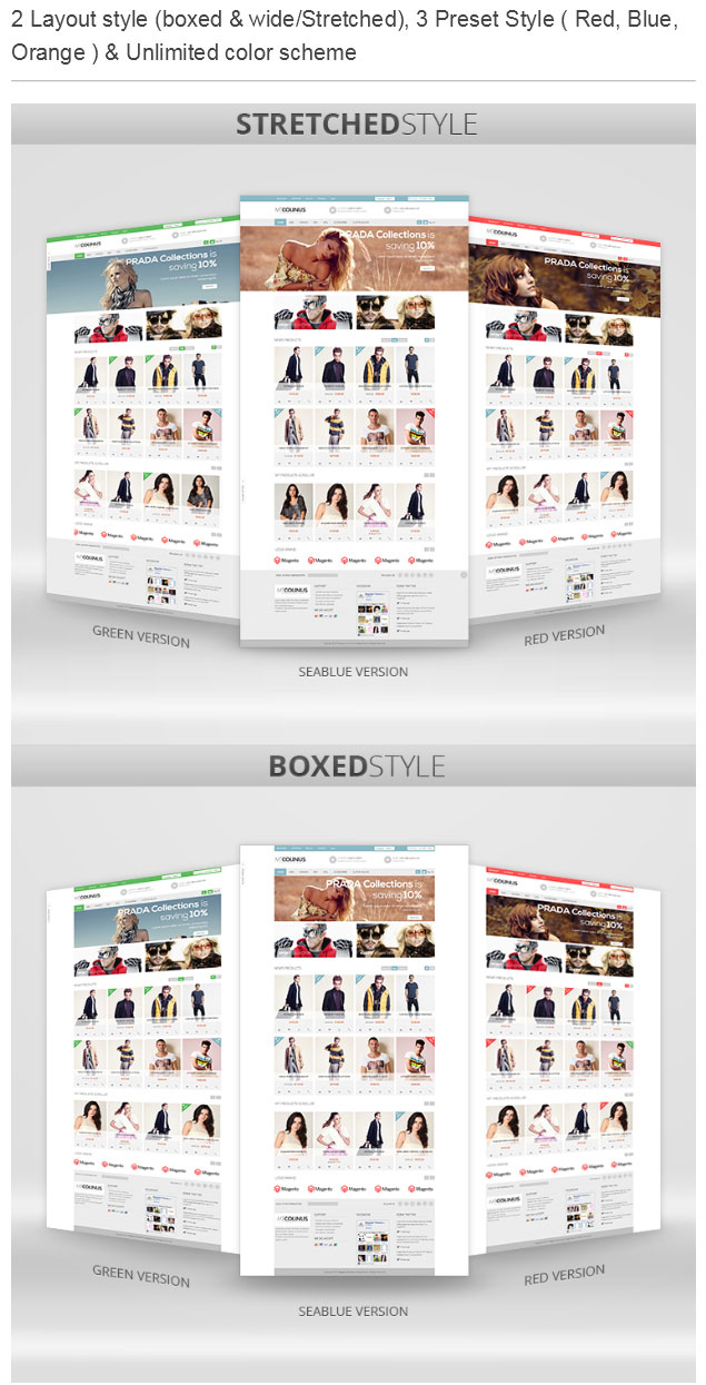 - Built-in 2 layout: Boxed and Stretched/wide