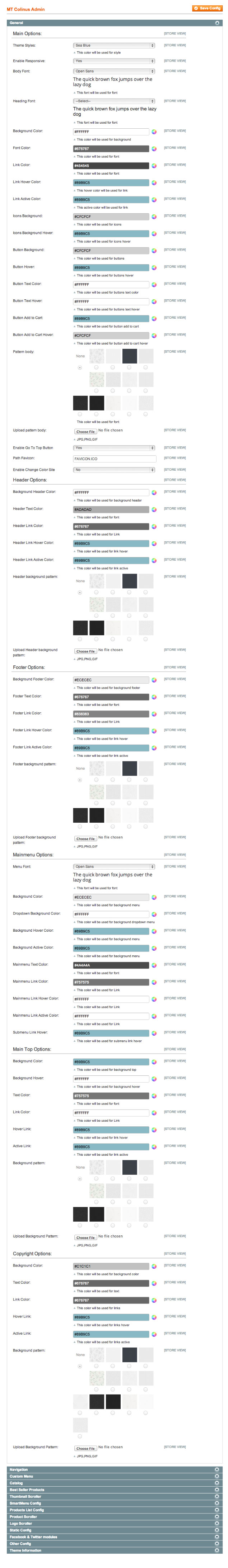 - Background patterns and color chooser: easy to change or upload your background images, you can set unlimited for your store