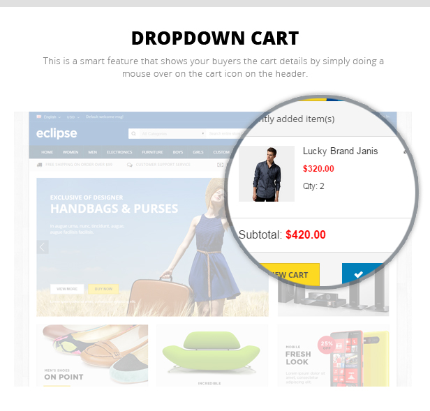 - Header dropdown shopping cart