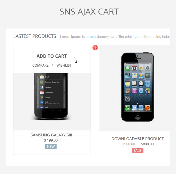- SNS Ajax cart: Ajax add to cart, compare, wishlish