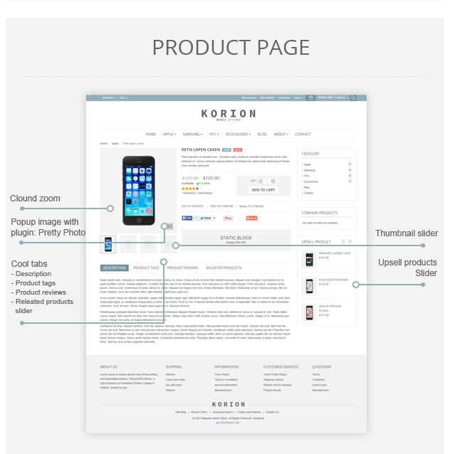 - Cloud zoom, Thumbnail slider, Pretty photo