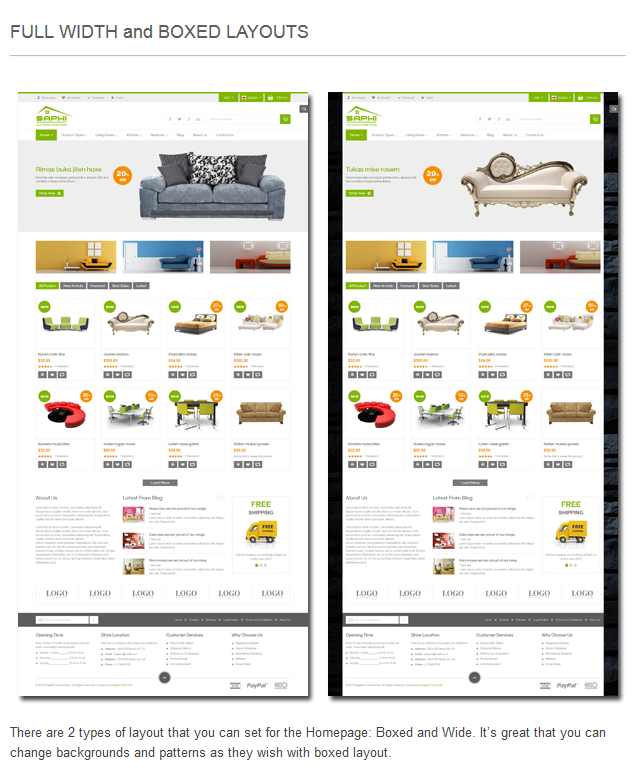 - Include extensions: SM Cart Pro, SM Dynamic SlideShow, SM Basic Products, SM Slider, SM Mega Menu, SM Search Box Pro, SM Base News, SM Tab Listing, Blog – Community Edition by aheadWorks