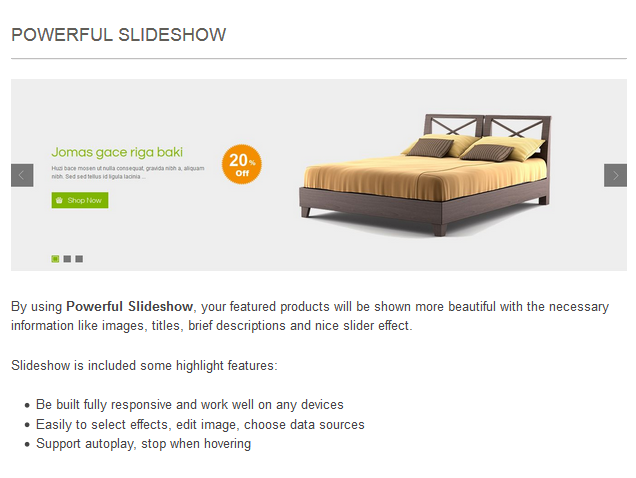 - Support Responsive Slideshow, Ajax Cart Pro for quick buy