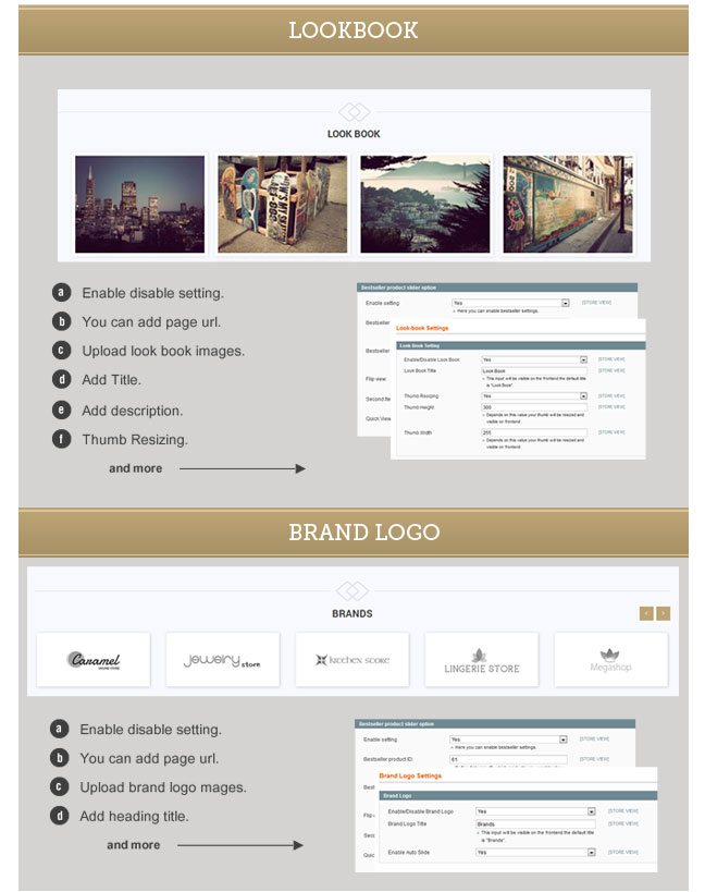 - LookBook Feature – Easily add, edit, remove & add URL to images