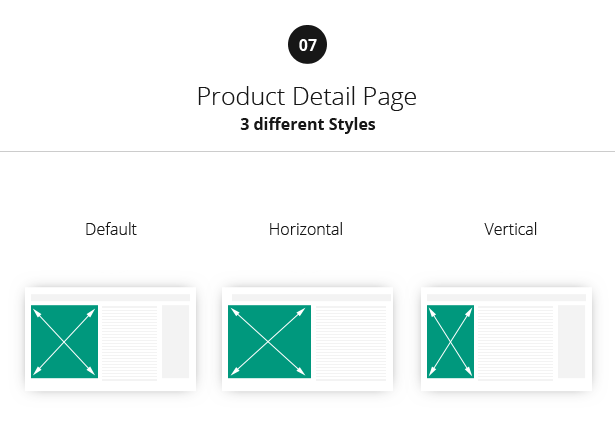 - Product Detail Page : Default or Horizontal or Vertical Style