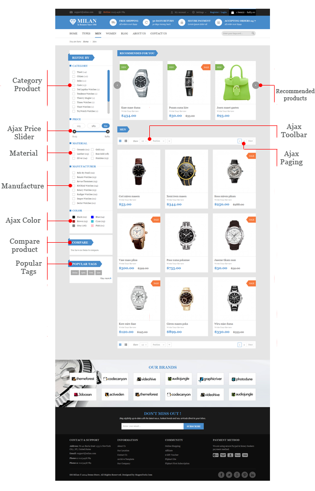 To enhance the customer’s shopping experience, we are integrated SM Shop By extension – a great extension come with Ajax technology that helps customer filtering products without refreshing page. By selecting Category, Price or Manufacture, your customer can find exactly product they want faster.