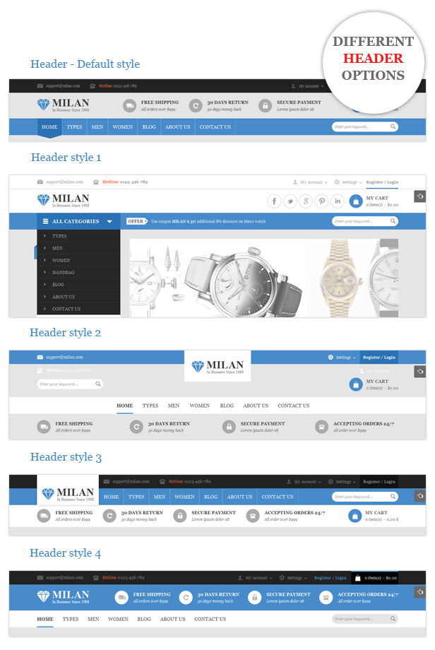Milan is designed to be fully responsive layout, it will make your site have amazing look on different screen resolutions such as: mobile, iPhone, iPad and other tablets. This is one of the best option to reach the customers who use smart devices.