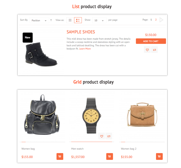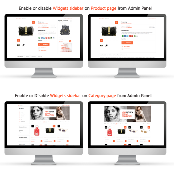 - Sliders for New and Sale products on HomePage (can be changed to grid display from admin panel)