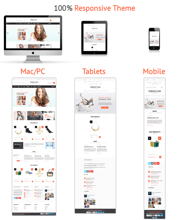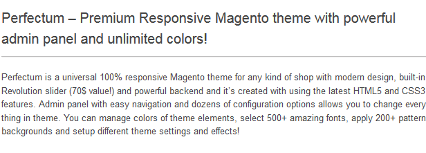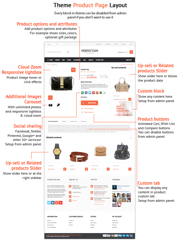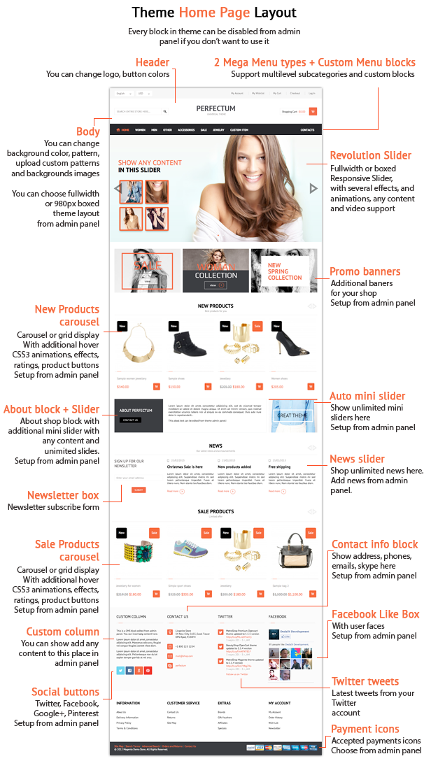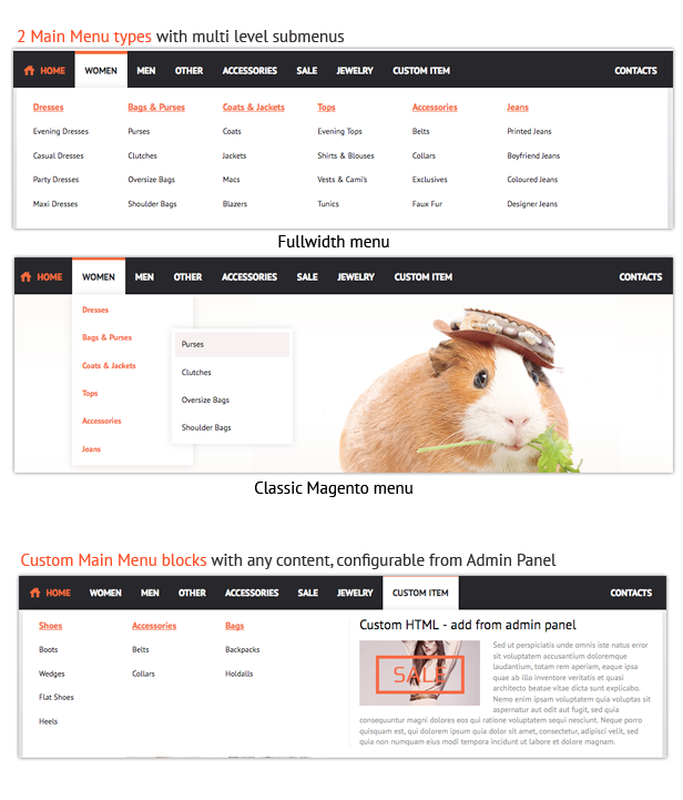 - 2 top menu types with Mega Menu feature (Standart magento menu and Special Perfectum menu type)