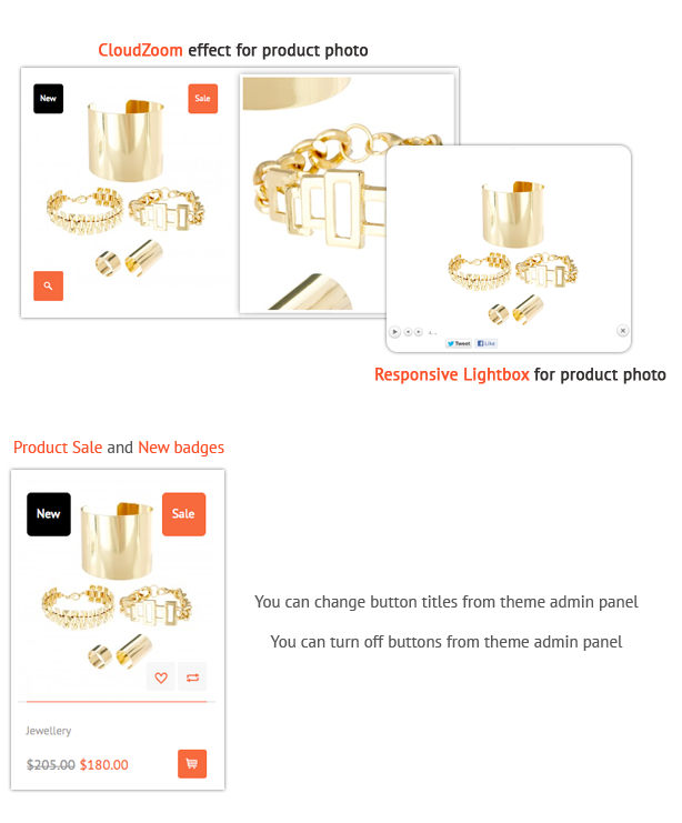 - Turn off Compare, WishList, Add To Cart and More buttons from theme admin panel