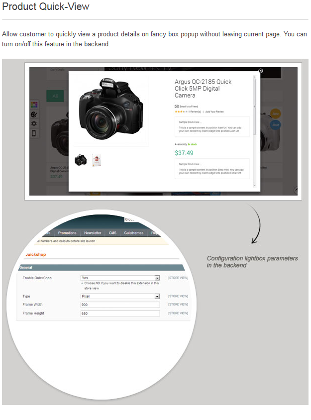 • Product quick-view feature.