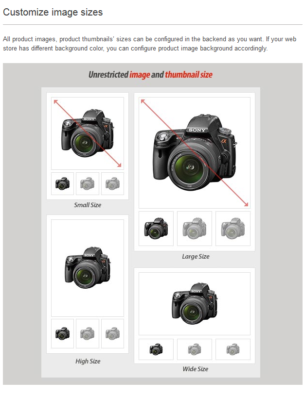 • Customize your product image sizes freely.