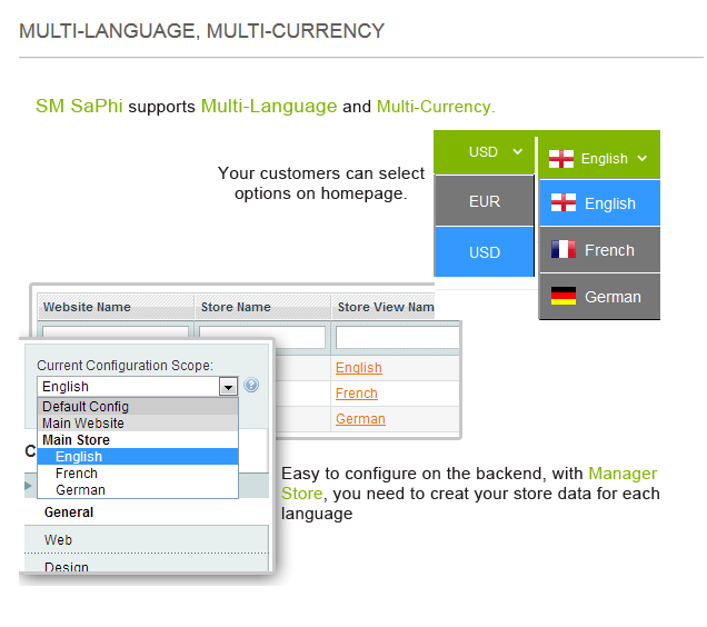 - Include extensions: SM Cart Pro, SM Dynamic SlideShow, SM Basic Products, SM Slider, SM Mega Menu, SM Search Box Pro, SM Base News, SM Tab Listing, Blog – Community Edition by aheadWorks